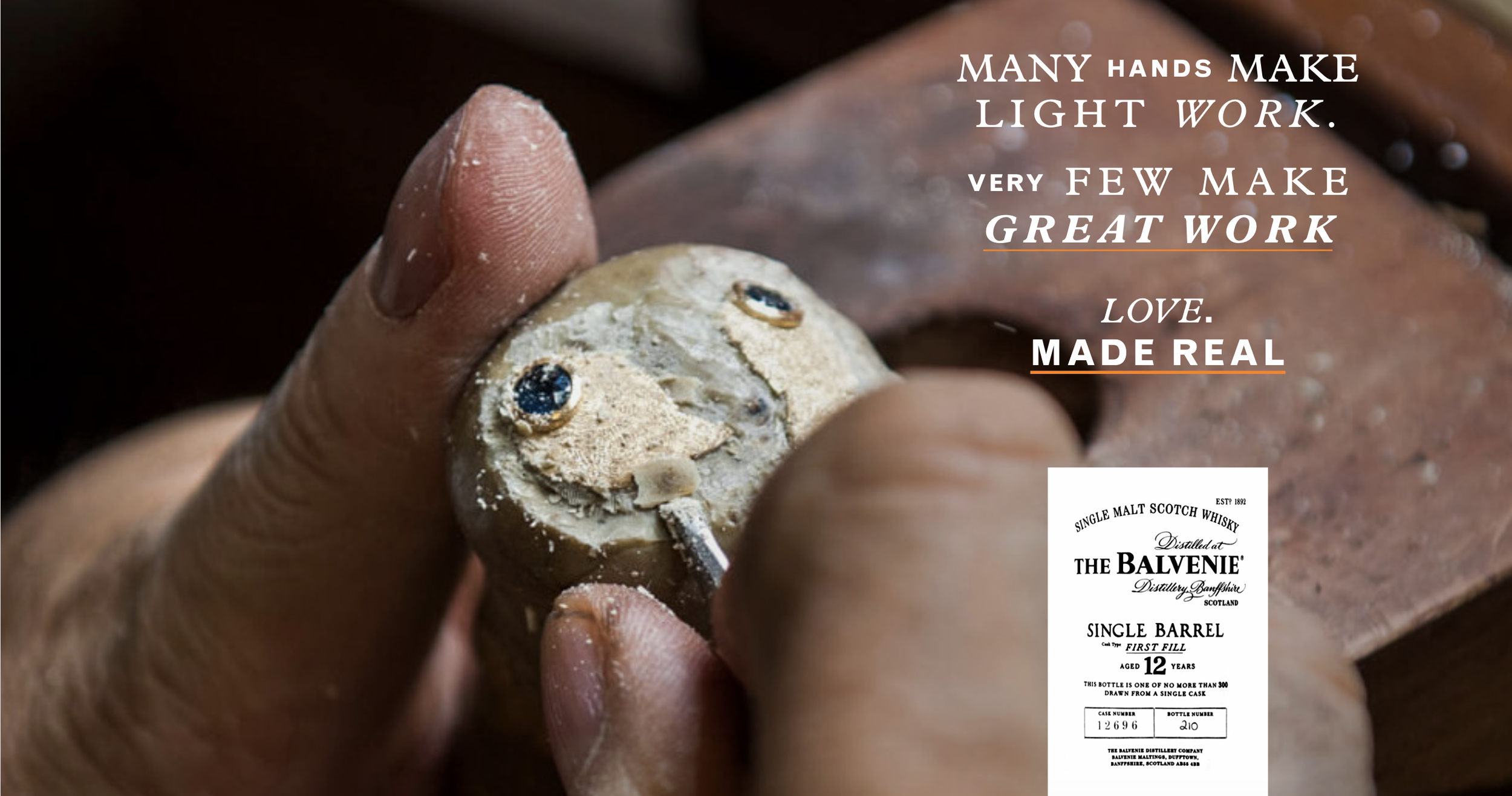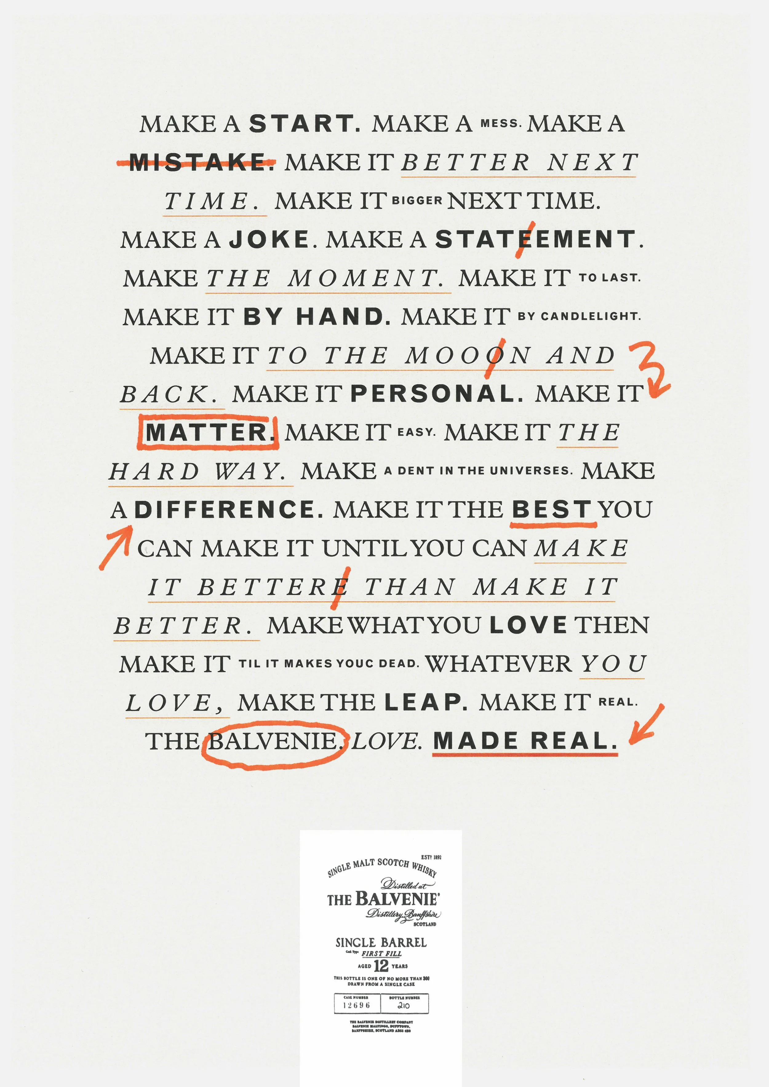 Copy ads for The Balvenie ‘Love made real’ campaign about hand crafted whisky (unmade)