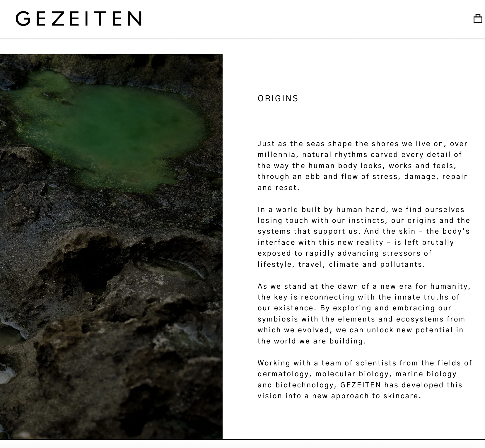 Brand story for Gezeiten about futuristic luxury skincare in symbiosis with human evolution