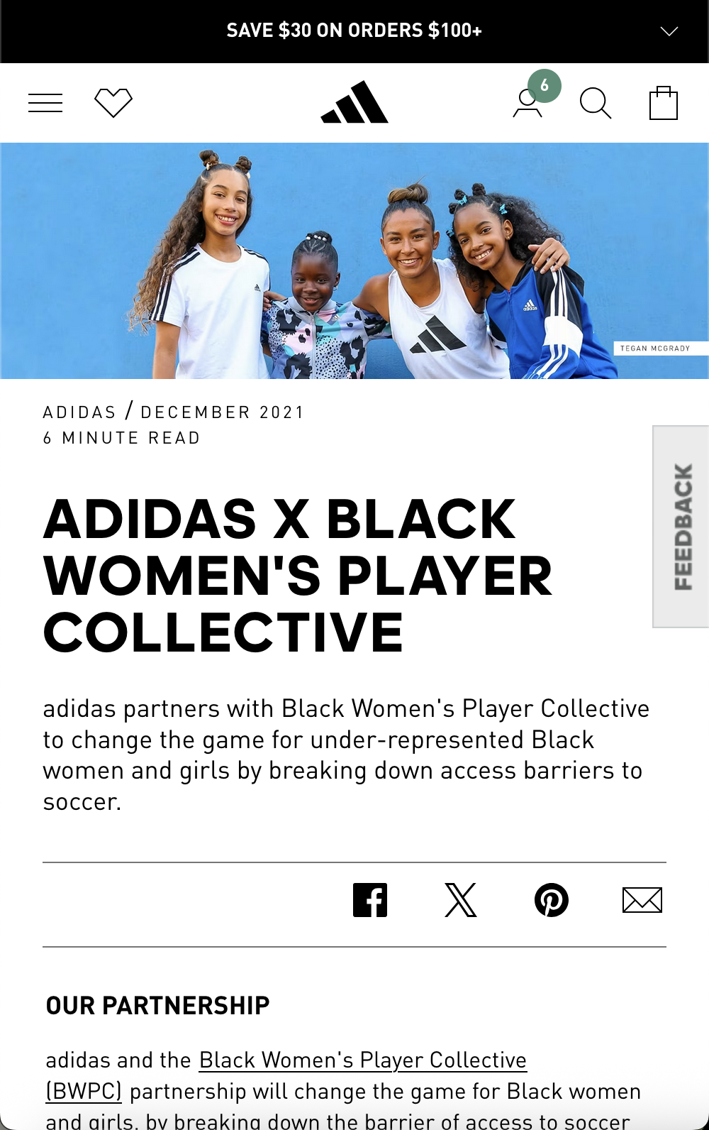 The platform has since seen Adidas renovate football courts in London and Paris, connect organisations as diverse as FIFA, the UEFA Champions League, the Black Womens’ Player Collective, England Amputee Football Association and Stonewall FC, and create editorial content in support of grassroots football with Copa 90.